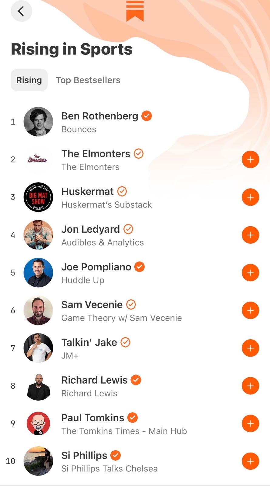 And there have been a lot of chimes and vibrations lately, I am happy to report: for what I believe is just the second time, on Tuesday Bounces hit the top spot on the daily Substack Sports chart, which tracks new subscribers over a 24-hour cycle.
