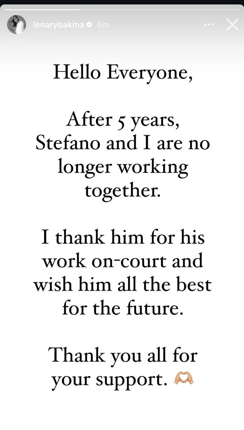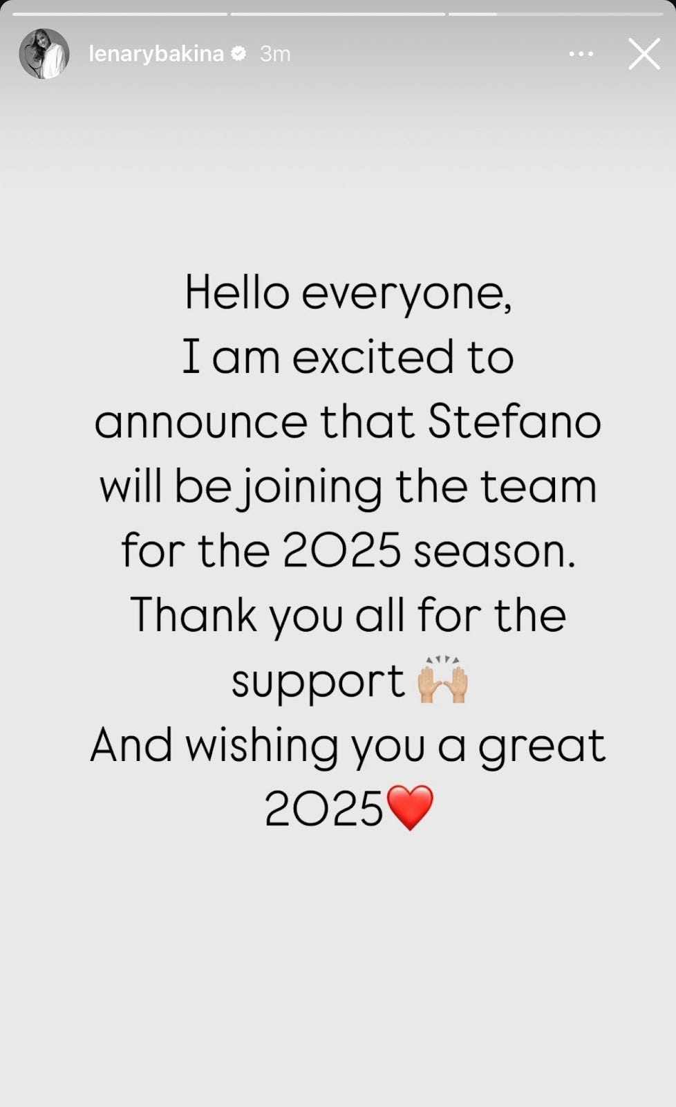 “Hello everyone, I am excited to announce that Stefano will be joining the team for the 2025 season,” Rybakina wrote in an Instastory. “Thank you all for the support. And wishing you a great 2025.”