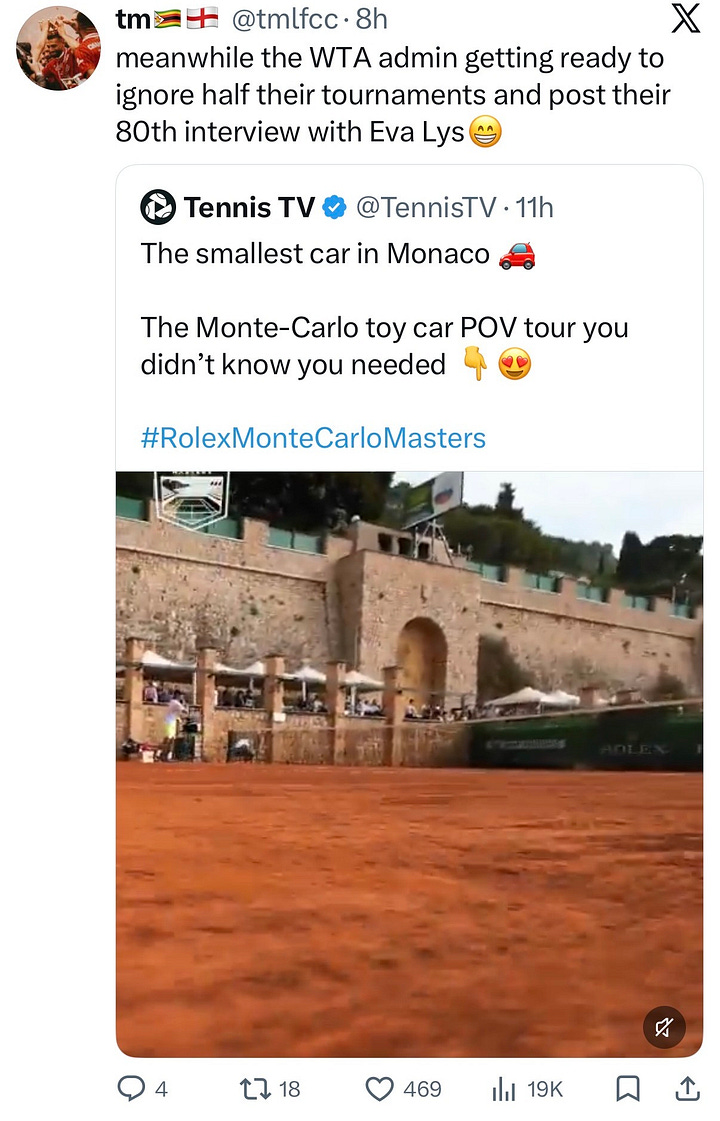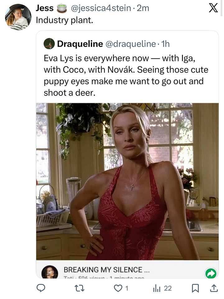 'Duguid and I spoke during the first week of Wimbledon, when Lys had just broken the 200,000 mark in Instagram followers. Fame and fortune in women’s tennis have never been as strictly tied to rankings and results as they are on the women’s side, and Lys was one of the clearest current examples of that.'