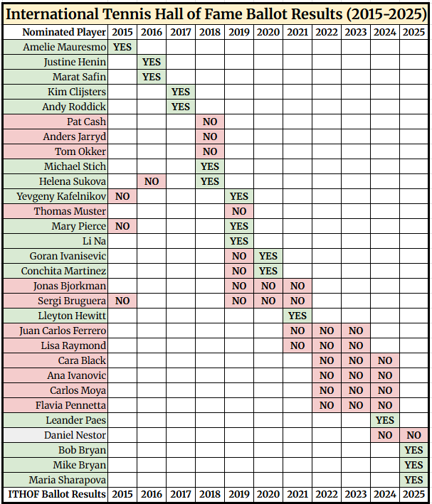 This year’s class is pretty stellar too, featuring Maria Sharapova, Bob Bryan, and Mike Bryan.