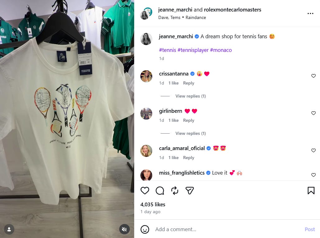 Fatefully, that instantly recognizable design was included in an Instagram video posted by the tournament and French tennis player and model Jeanne Marchi Manissier.