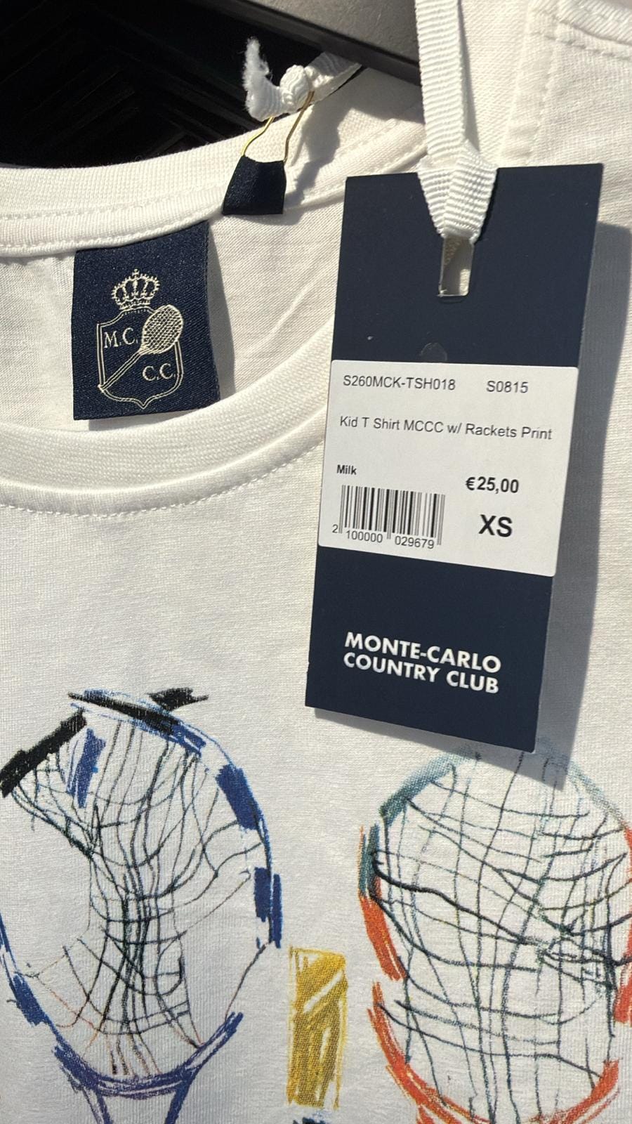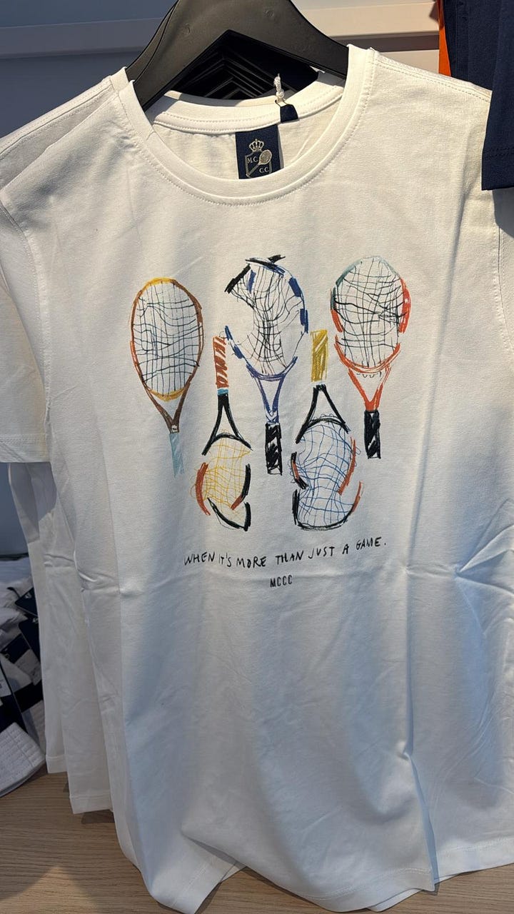 As visible on the tag, the shirt is part of an MCCC-branded collection in the shop, rather than the tournament-branded collection around the event officially known as the Rolex Monte Carlo Masters.