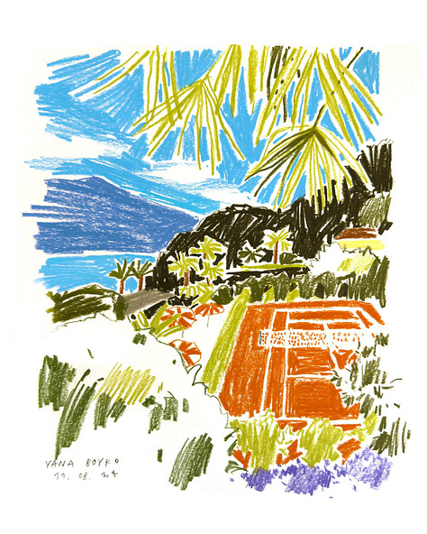 Boyko primarily works with wax pastels, including for the drawing of the racquets she said she made in 2024 before fleeing Ukraine because of the Russian invasion of the country. Tennis, she said, has been a lifelong interest of hers, even when the sport itself was not easily accessible to her during her youth in Ukraine.